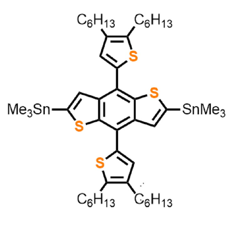 中文別名:(4,8-雙(4,5-二己基噻吩-2基)苯并[1,2-b:4,5-b']二噻吩-2,6-二基)雙三甲基錫